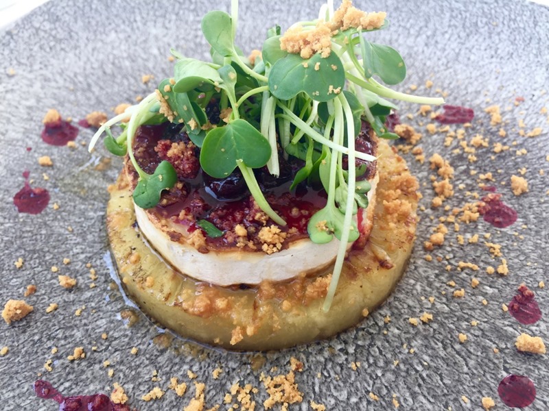 Como entrantes “Ceviche de cherne con escaldón de gofio y tubérculos” y “Tartar de atún con aguacate, dados de manga, cebolla roja, brotes de cilantro y vinagreta asiática”, ambos platos destacaban por ofrecer un contraste de sabores intensos, frescos y equilibrados. Continuamos con “Pulpo confitado y cremoso de los Valles”, el pulpo en un punto de cocción perfecto, sabroso, consistente y delicado a la vez, acompañado con una crema de papas aderezada con pimentón de La Vera y aceite ahumado, sencillo y sabroso y bien ejecutado.