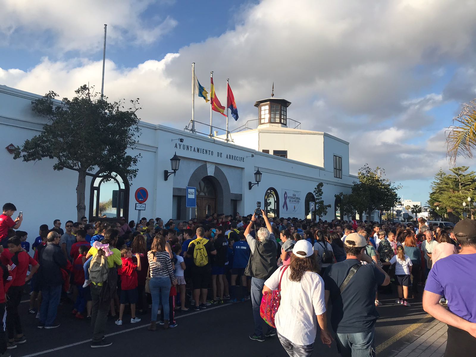 Esta es la primera vez en la historia de Arrecife, y de Lanzarote, en la que se produce una manifestación de este tipo, en la que los clubes deportivos, de todas las modalidades, se ven obligados a convocar a sus deportistas, niños en este caso, en las puertas del Ayuntamiento, como último recurso, ante el insostenible retraso en el abono de las subvenciones, que hacen posible el desarrollo de la tan importante labor, no solo deportiva sino social, que realizan en pro de tantos niños y jóvenes de todo el municipio.