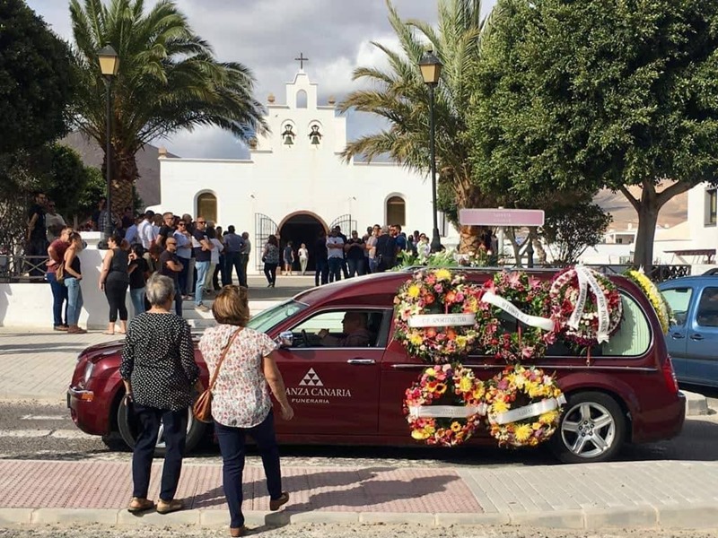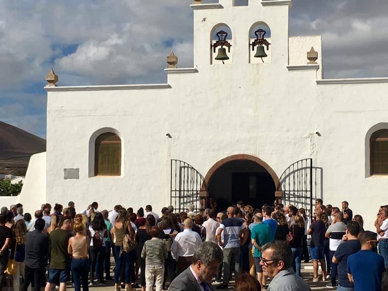 Más de un centenar de personas acompañaron con paso lento el féretro del ex jugador de la U.D. Lanzarote para asistir a la ceremonia religiosa oficiada en su recuerdo. Los allegados al futbolista no disimulaban su tristeza y expresaron su pesar por la muerte del joven de 34 años.