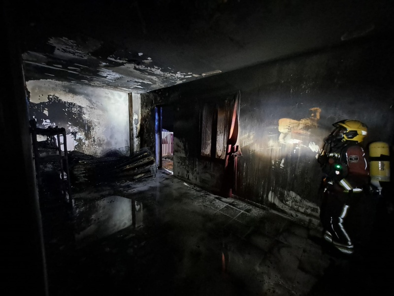 Justamente el buen hacer del cuerpo de Bomberos fue lo que evitó que la situación se complicara. Poco antes de la medianoche, alertados por el Consorcio de Seguridad y Emergencias, acudían al lugar, para comprobar que el fuego afectaba a unos 40 colchones que estaba apilados en una sala.
