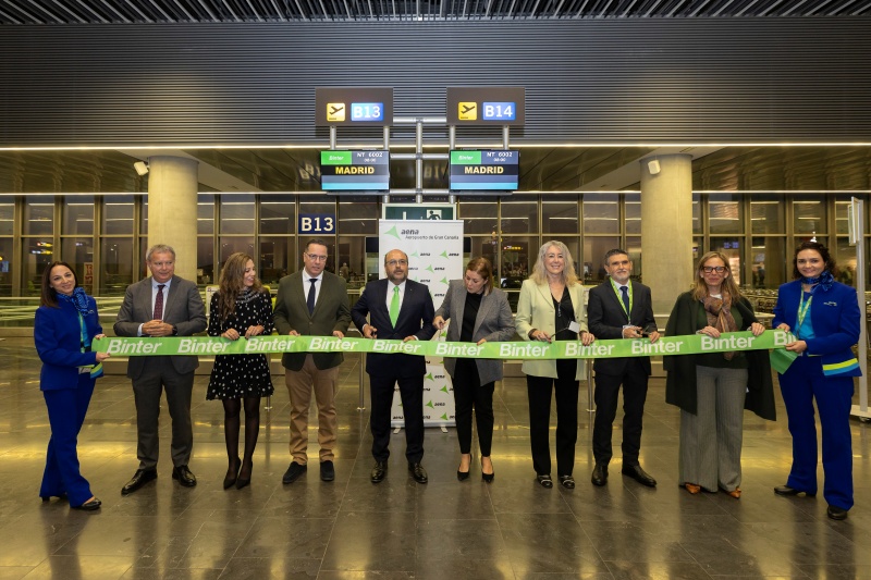 En el aeropuerto de Madrid se realizó el corte de cinta del vuelo que salió a las 12:30 horas con destino a Gran Canaria con la presencia del director del aeropuerto, Mario Otero. Por parte de la compañía estuvieron presentes su director Comercial y de Marketing, Miguel Ángel Suárez, y el gerente del operador Binter Airlines, David Manzanas, acompañados por personal de Drago Handling y por la tripulación del vuelo.