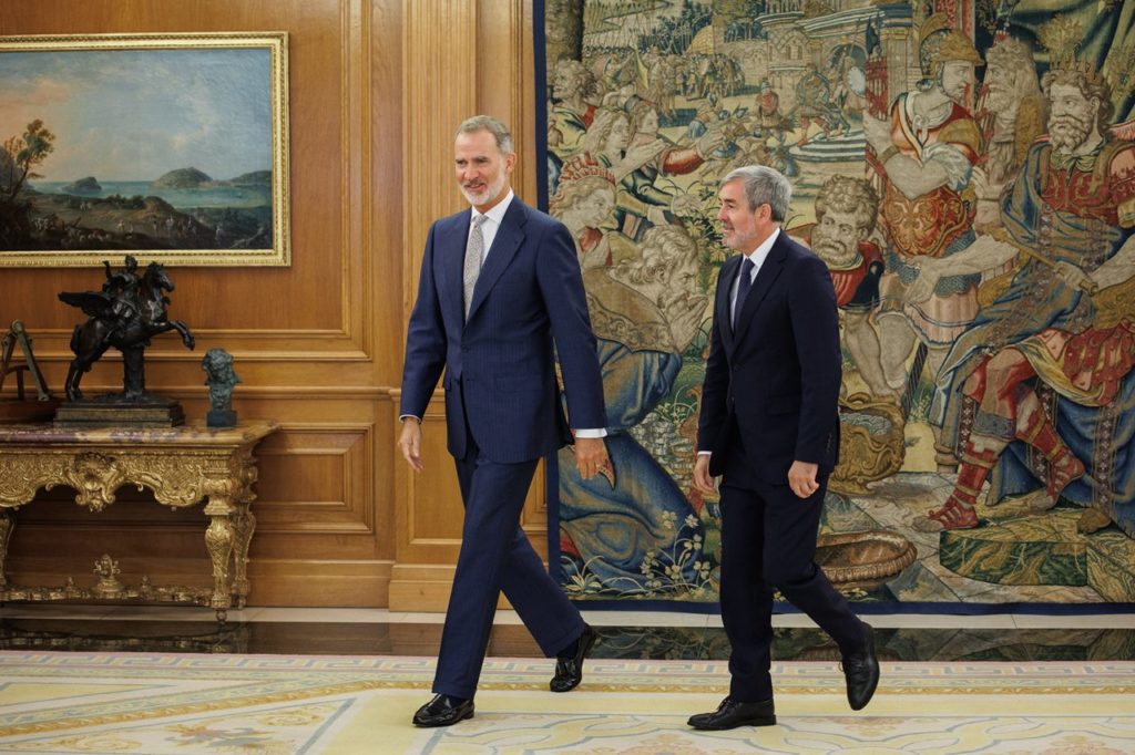 El presidente de Canarias, Fernando Clavijo, expondrá esta tarde al rey Felipe VI en Tenerife la situación migratoria de las Islas y las acciones emprendidas por su gobierno desde la declaración de la emergencia humanitaria en su territorio por la constante llegada de patera y cayucos.