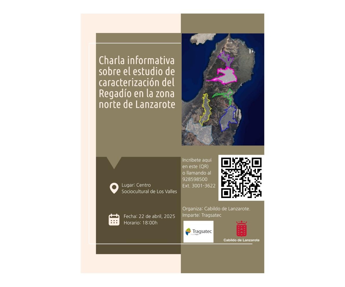 El Cabildo de Lanzarote, a través del Área de Agricultura y Ganadería, invita a los agricultores y agricultoras del centro y norte de la isla a participar en una charla informativa sobre el estudio de caracterización del regadío que se está llevando a cabo en la zona. Este estudio permitirá tener una visión clara y actualizada de las condiciones y necesidades hídricas del territorio.