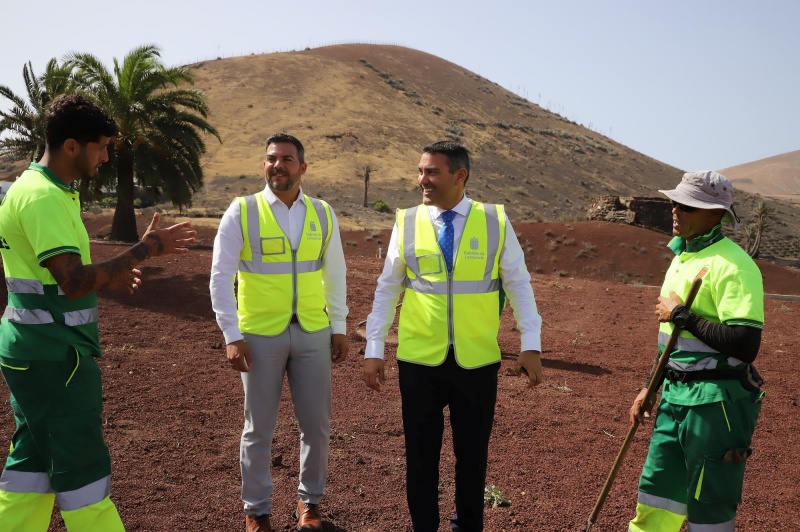 El presidente del Cabildo, Oswaldo Betancort, acompañado por el consejero de Obras Públicas, Jacobo Medina, visitó el sur de la Isla, donde se están llevando a cabo las primeras actuaciones de mejora de las infraestructuras viarias y márgenes de carreteras de Lanzarote.