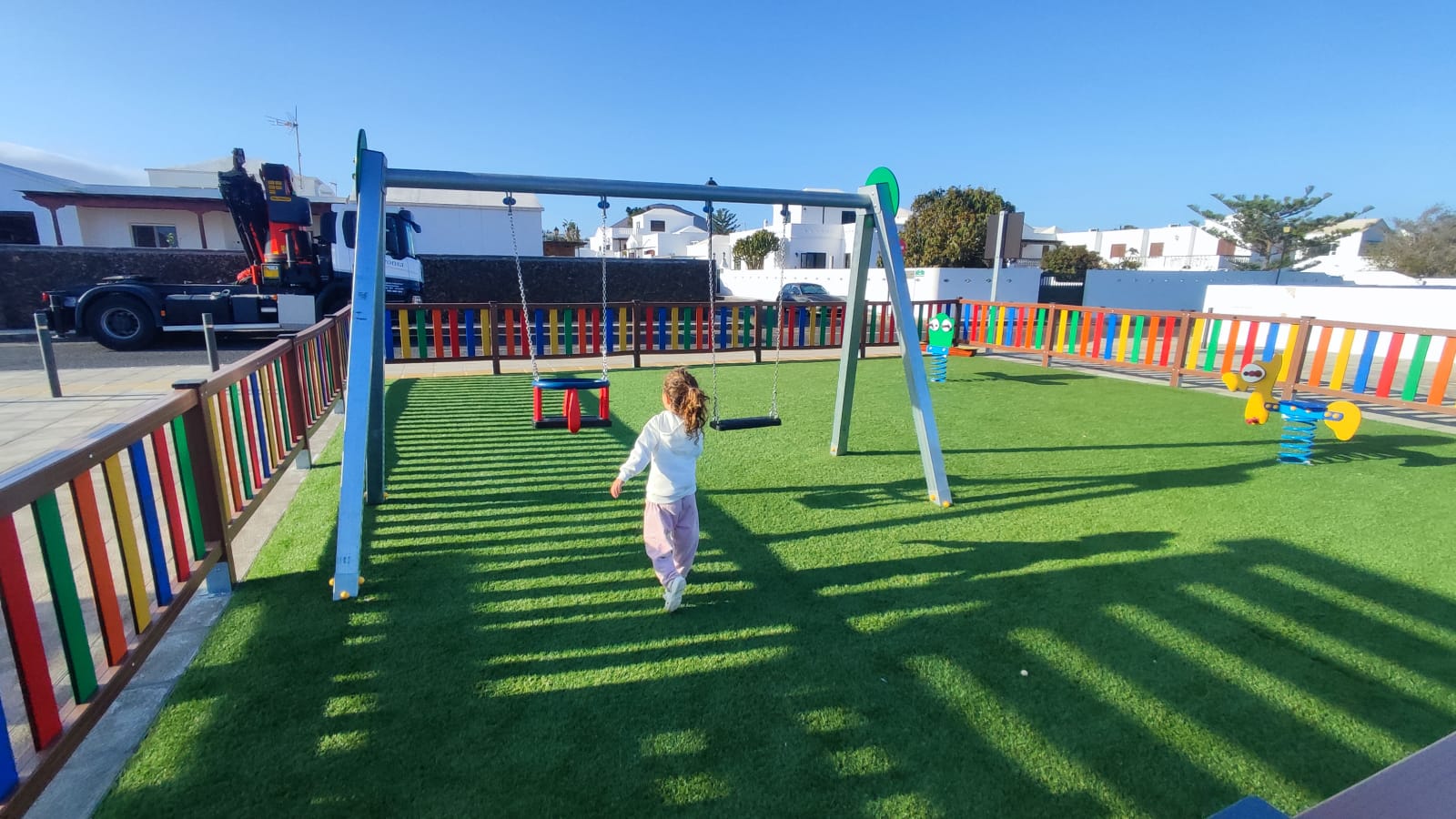 Las instalaciones han sido renovadas y además de la cancha, también se ha habilitado un pequeño parque infantil con columpios y césped sintético para los más pequeños. Además existen cinco máquinas para realizar deporte al aire libre, más orientado a un entrenamiento funcional y poco agresivo, perfecto para personas mayores.