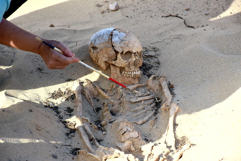 La arqueóloga de la Universidad de La Laguna, Esther Chávez comentaba que ya se han encontrado restos óseos de 5 personas en el espacio de necrópolis que están excavando en estos momentos.
