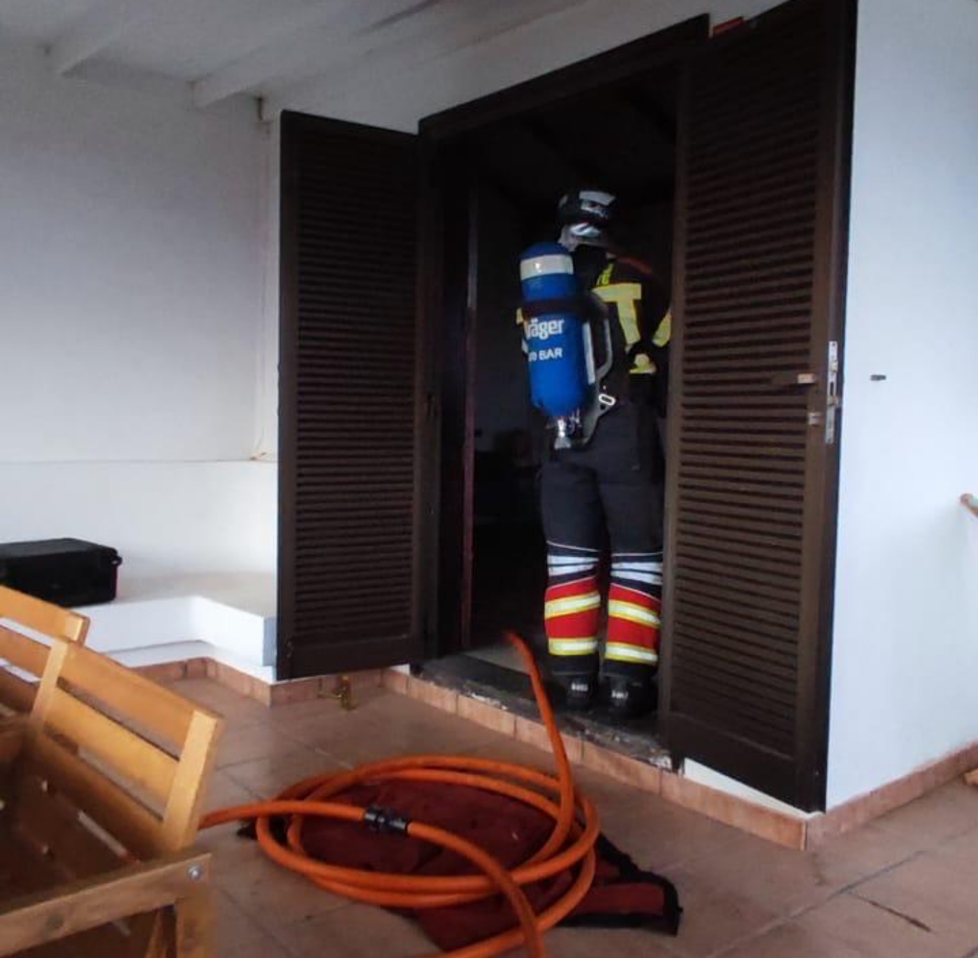 Al llegar al lugar, donde ya se encontraba la Policía Local de San Bartolomé, confirmaron que la vivienda estaba llena de humo. Se procedió a realizar una apertura forzada para acceder al interior, rompiendo el bombín de la puerta.