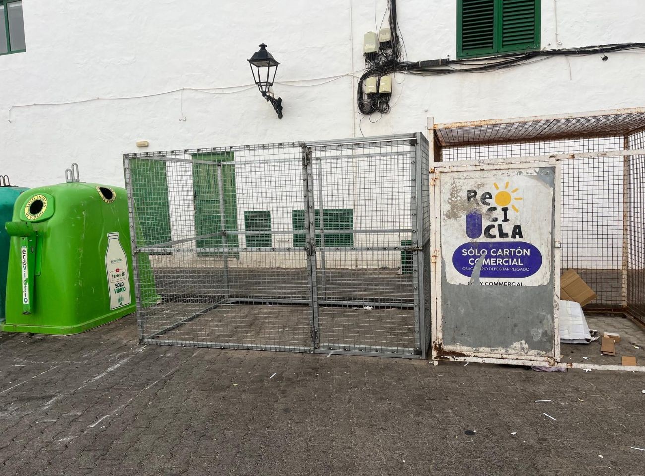 Las jaulas están situadas, una en la parcela al lado de la iglesia y otra en la calle Comedero, para completar dos en cada uno de estos puntos neurálgicos donde tiendas, bares y restaurantes suelen tirar cartón y otros residuos, sumando además otra jaula que el Ayuntamiento ya había instalado en el punto de contenedores próximo al puerto.
