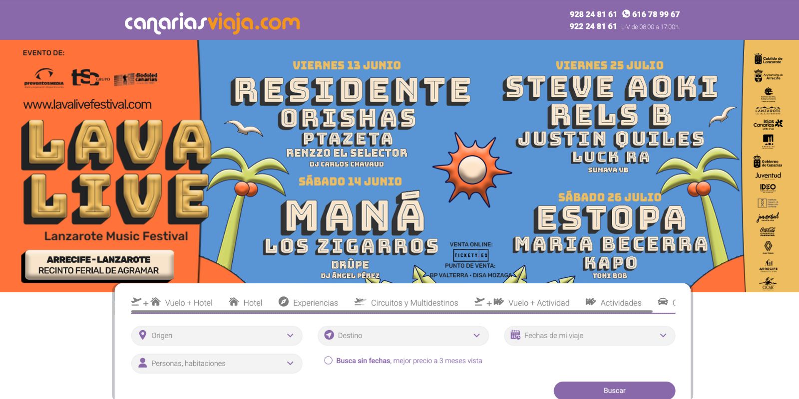 Según ha señalado el CEO del grupo TSC, Eduardo Ferrer, "buscamos que las personas que vengan de fuera de Lanzarote vivan el Lava Live no solo como un evento musical, sino como una inmersión completa en la cultura y energía de nuestra isla". Y considera la alianza con CanariasViaja.com "un impulso clave para el posicionamiento turístico del festival y una oportunidad única para quienes desean vivir una experiencia memorable, segura y planificada".