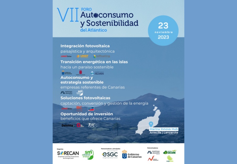 La asociación de Empresas Canarias Productoras de Energía Solar, SORECAN, y la empresa de energía solar, SM Advance Energy, celebran el próximo jueves 23 de noviembre, el VII Foro de Autoconsumo y Sostenibilidad del Atlántico.