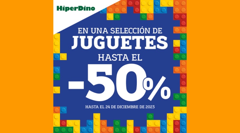 HiperDino ofrece desde hoy 15 de diciembre y hasta el 24 de diciembre, un 50% de descuento en una amplia selección de juguetes, en aquellas tiendas de la cadena con esta categoría.