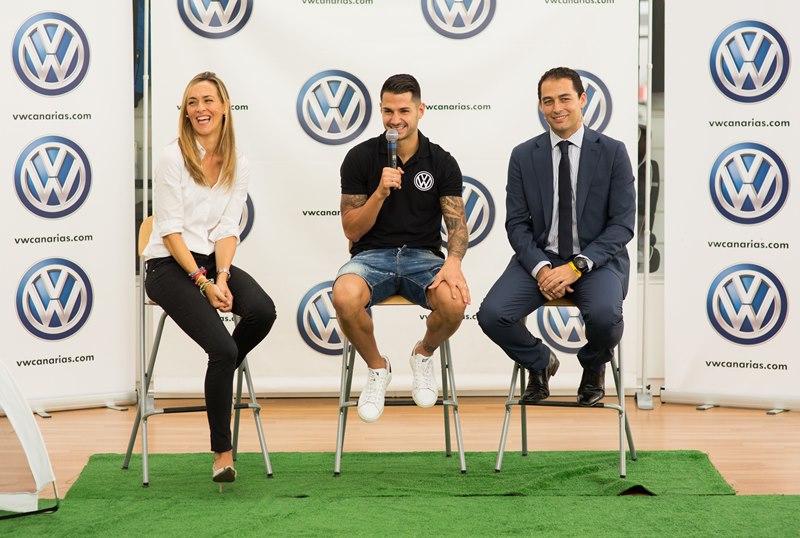 Daniel Guillén y Magüi Melián se retaron el uno al otro en público para poner a prueba sus conocimientos de fútbol, hasta que Vitolo hizo su aparición para atender a la prensa deportiva que le esperaba ansiosa. El grancanario agradeció a la marca su apoyo y se mostró muy contento con la firma de este acuerdo. El jugador contará con un Volkswagen Touareg que la marca le ha cedido y que cuenta con todas las comodidades que el jugador necesita.