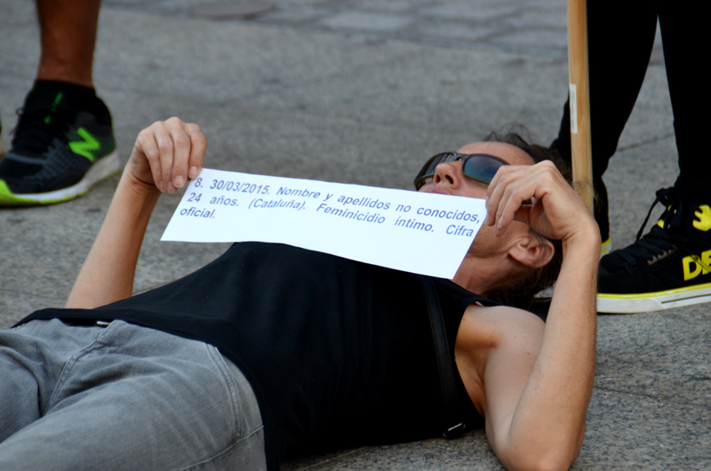 "Mujeres y hombres contra el terrorismo machista", "El machismo mata" o carteles con las fechas de los "feminicidios" fueron algunos de los elementos utilizados en esta escenificación del maltrato hacia las mujeres.