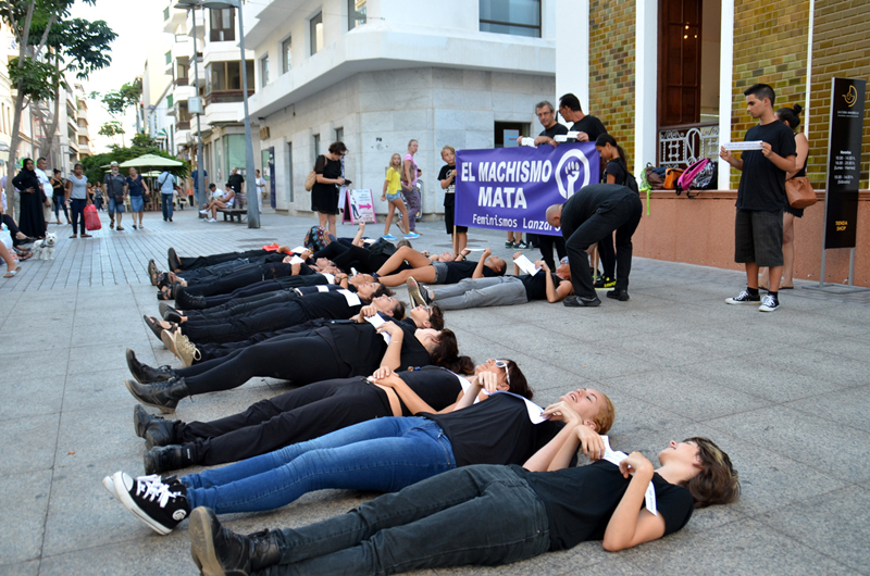 La coordinadora Feminismos Lanzarote escenifica su lucha contra el "terrorismo machista" en la calle Real