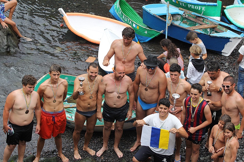 Tras la lucha llegó el momento de las divertidas carreras de chalanas y jolateros en la que la participación fue muy importante, tanto de adultos como de chinijos, que aprovecharon además para darse un buen remojón en El Poril y refrescarse ante las altas temperaturas que se registraron durante la jornada.