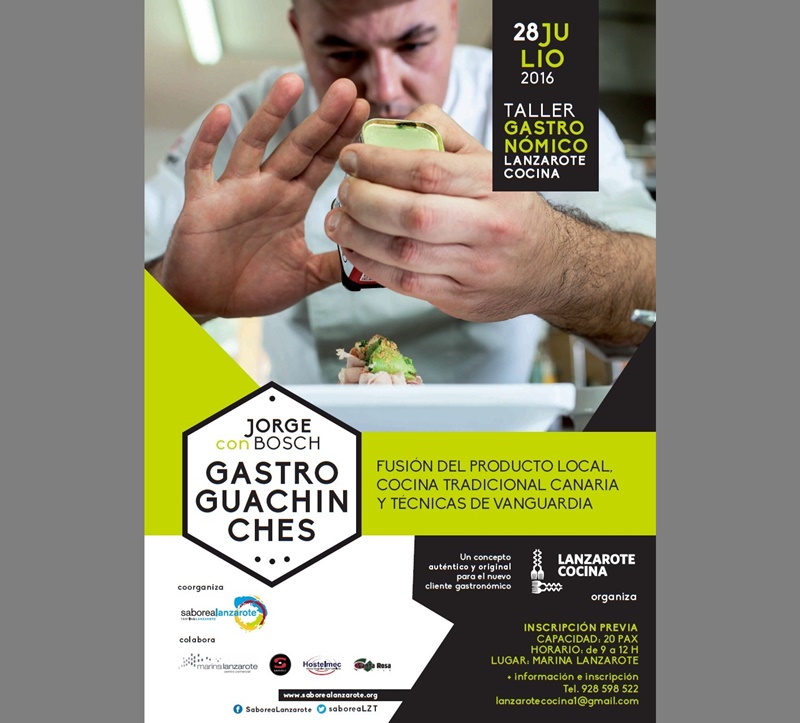 El próximo 28 de julio el maestro cocinero Jorge Bosch impartirá el Taller Gastronómico Lanzarote Cocina en la Marina de Arrecife de 09.00 a 12.00 horas en el Restaurante el Lilium, fusionará el producto local con la cocina tradicional canaria y técnicas de vanguardia. Se trata de impartir un concepto auténtico y original para el nuevo cliente gastronómico. El taller está organizado por Lanzarote Cocina, con la coorganización de Saborea Lanzarote.
