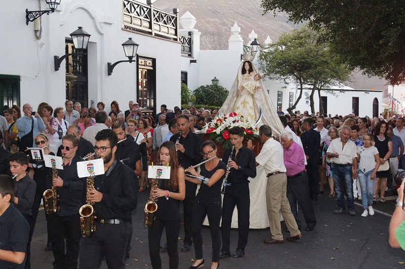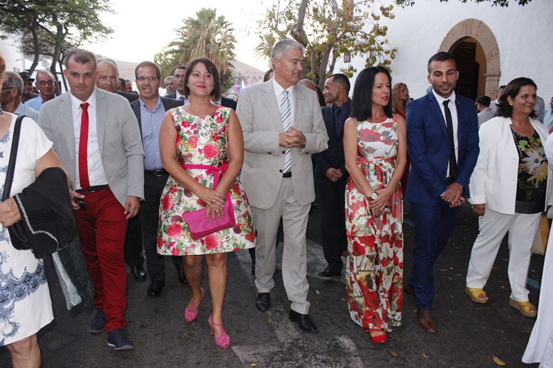 Un estruendoso aplauso y los vivas a la Virgen, ya casi con la noche encima, marcaron luego el inicio del la procesión por la calles del pueblo. La alcaldesa de Yaiza, Gladys Acuña, el vicepresidente del Cabildo, José Juan Cruz, los alcaldes de Teguise y Tinajo, Oswaldo Betancort y Jesús Machín, respectivamente, concejales de la Corporación municipal de Yaiza, distintos representantes públicos y el grupo de peques participantes del Reinado Infantil de Yaiza y sus familiares acompañaron el andar de los fieles junto a la imagen de la Patrona. Como es habitual, la Banda Municipal de Yaiza encabezó el recorrido de adoración a la Virgen. Lprocesión también finalizó entre vítores y aplausos.