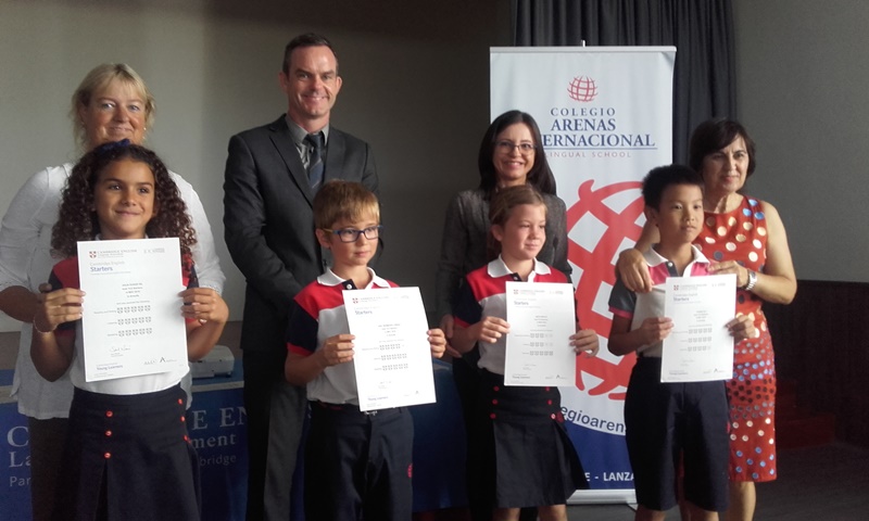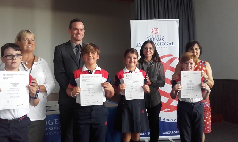 El alumnado de Primaria, Secundaria y Bachillerato del Colegio Arenas Internacional que concurrió a los exámenes externos de alemán en los niveles A1, A2 y C1; de chino (YCT 1 y 2); y de inglés (Starters, Movers, Flyers, PET, First y Advanced), han recibido los certificados externos de idiomas que acreditan el nivel de conocimiento adquirido en estas lenguas modernas en el Centro educativo, ubicado en Costa Teguise.