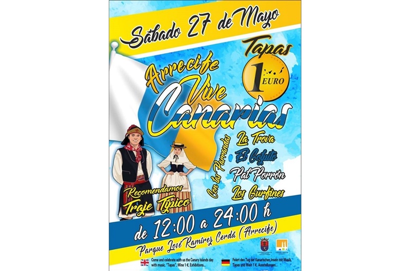 Feria de la Tapa en Arrecife para celebrar el Día de Canarias. 28 estabecimientos ofrecerán tapas a un euro el sábado 27 de mayo, a partir de las 12 horas, en el Parque Ramírez Cedrá, donde no faltará la música con las actuaciones de las parrandas La Trova, El Golpito, Pal Porrón y Los Gurfines.