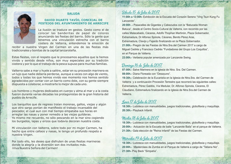 "Estas fiestas son muy especiales por su tradición costera y por lo que la pesca supuso para muchas familias, desde hace muchos años estoy vinculado a ellas por mi familia y espero que este año las disfrutemos con alegría y gran participación", apunta el concejal de Festejos de Arrecife, David Duarte