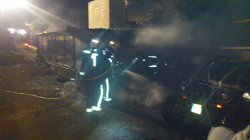 La rápida acción de los bomberos evita que las llamas lleguen a las bombonas de gas