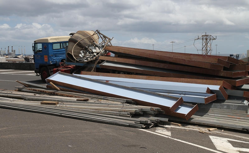 Desparramó su carga sobre el asfalto