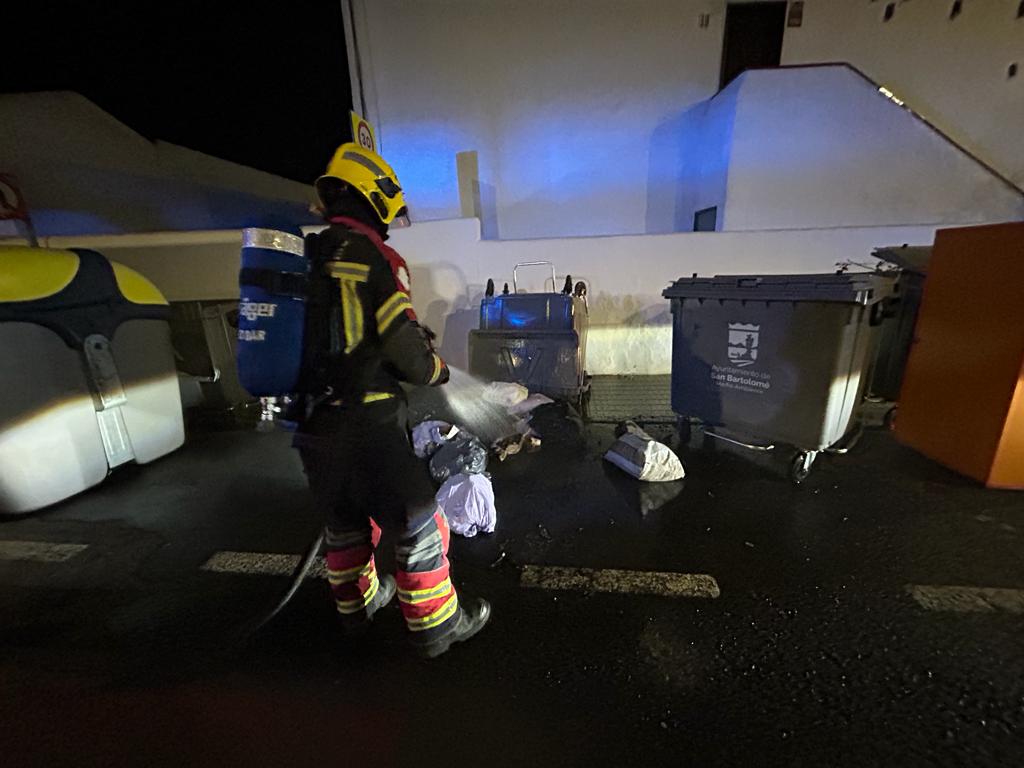 Los Bomberos de Lanzarote tuvieron que acudir para sofocar un incendio que afectaba a un contenedor