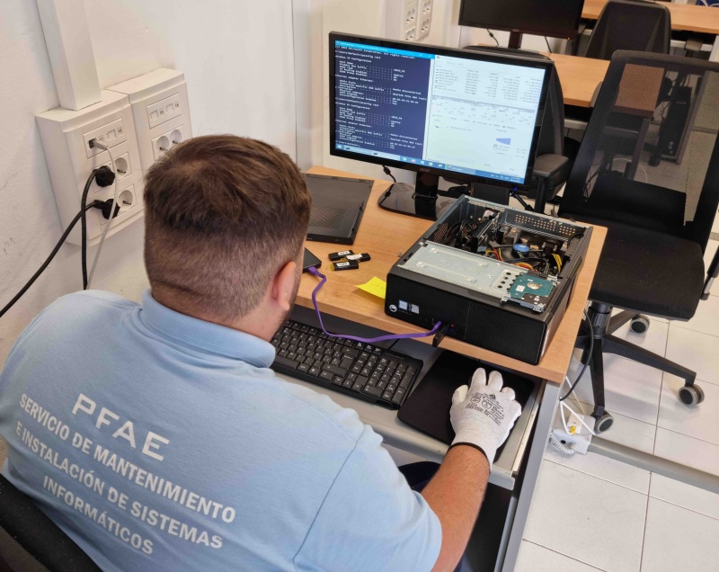 El alumnado del proyecto formativo "Servicios de Mantenimiento e Instalación de Sistemas Informáticos" repara equipos en desuso para su donación a ONGs de la isla