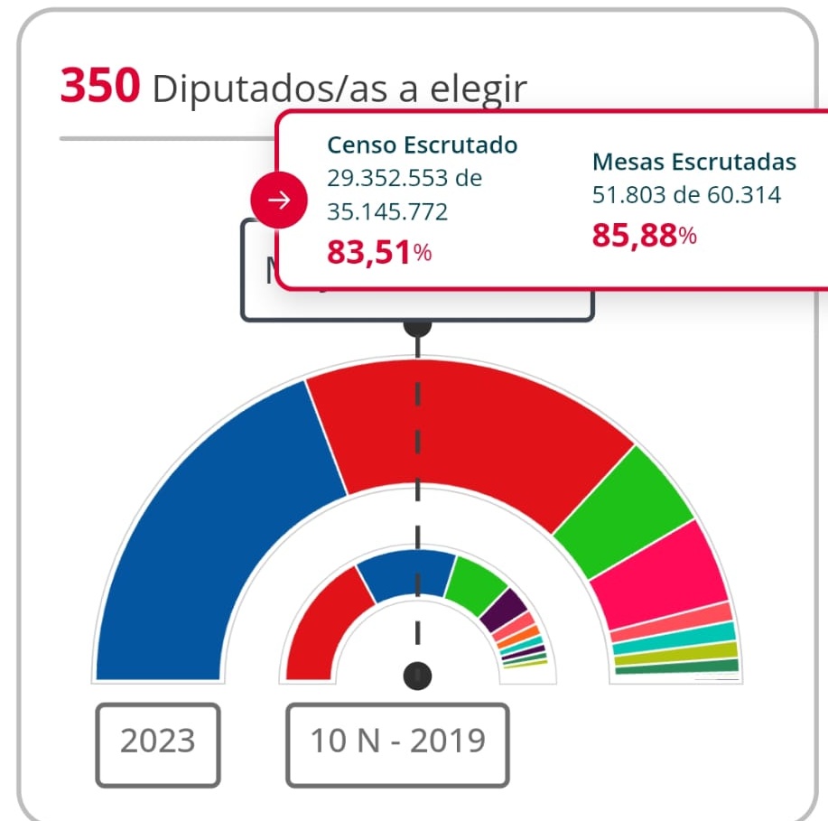 A nivel nacional con el 67% escrutado, el PP es el más votado y obtiene 131 diputados