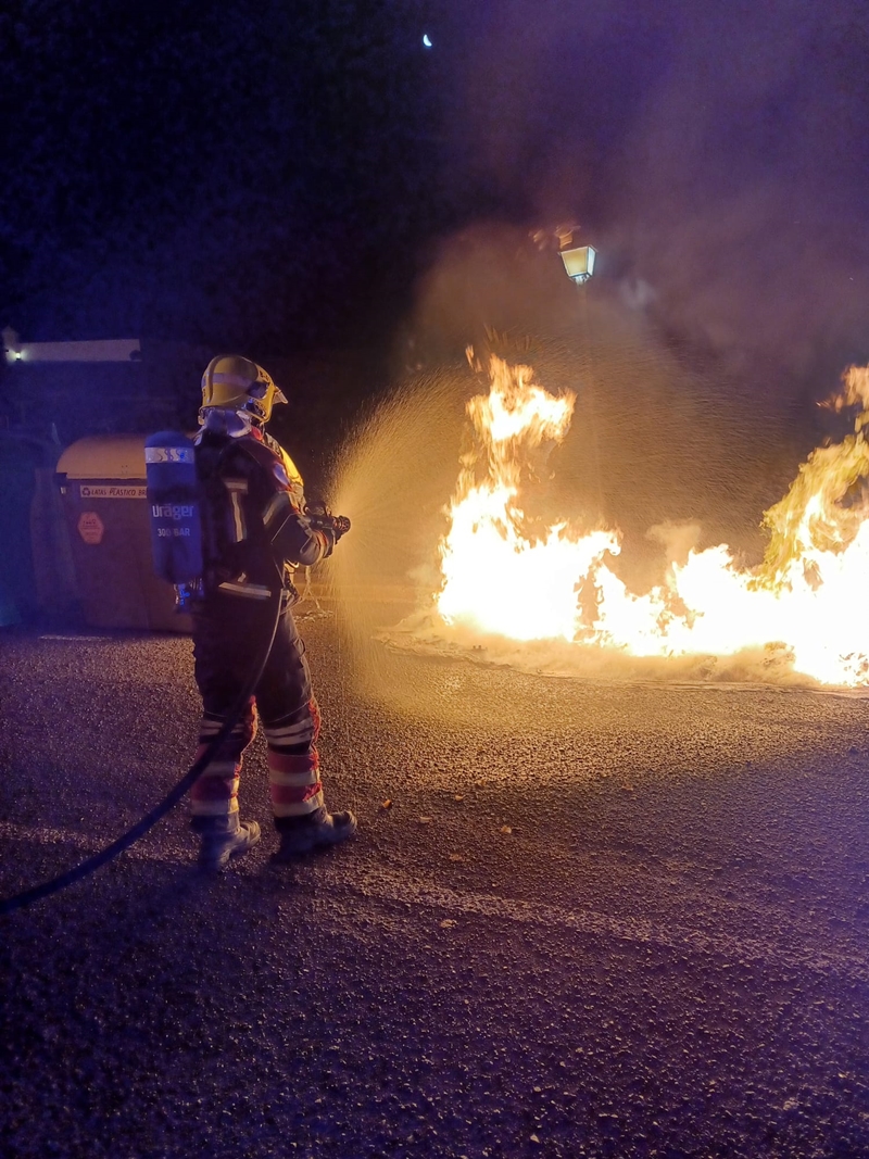 Estaba totalmente calcinado cuando llegaron los bomberos a la calle Las Acacias, afectando el fuego a un segundo contenedor