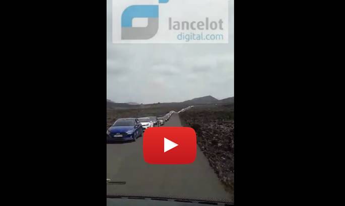 Se volvió a ver este viernes al mediodía una fila de unos dos kilómetros en el Parque Nacional de Timanfaya