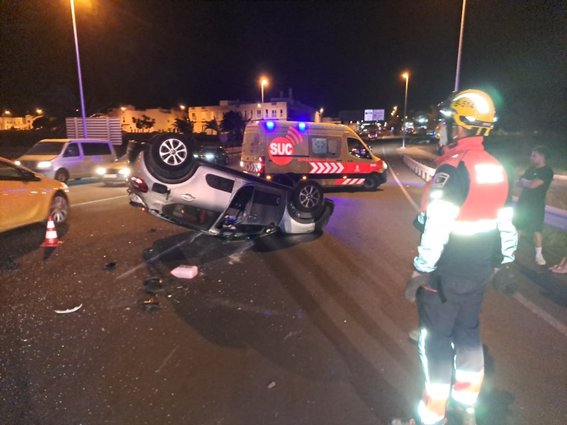 Uno de los dos coches implicados quedó en la calzada sobre su propio techo