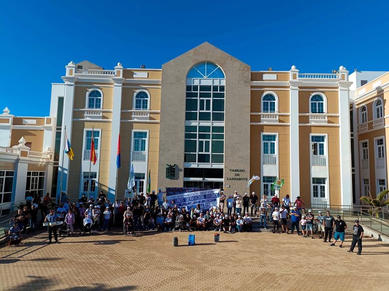 Representantes de la Asociación de Autocaravanistas El Burgao Verde se concentran delante del Cabildo de Lanzarote con distintas reivindicaciones