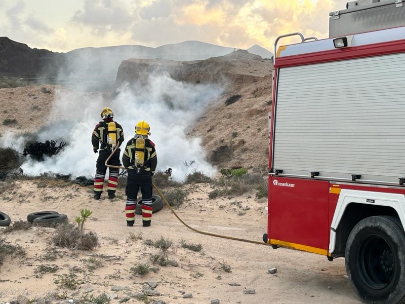 Los Bomberos sofocaron el fuego que se había producido en una cantera de jable en la carretera hacia el Charco del Palo