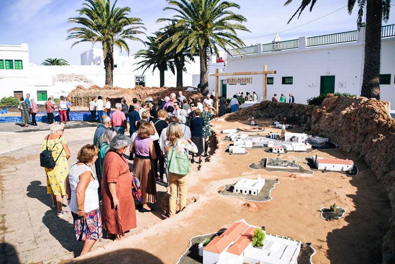 La plaza Camilo José Cela ya luce el nuevo Belén tradicional, en una inauguración que contó con el tenor lanzaroteño Raúl Rod, cantándole a la Navidad.