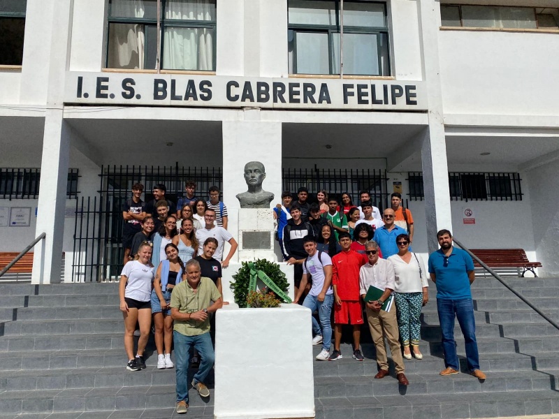 El alumnado de Secundaria del IES que lleva su nombre organizó un homenaje floral frente a su busto