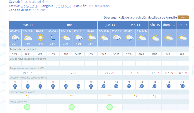El viento soplará del este, de moderado a flojo con ráfagas de hasta diez kilómetros por hora
