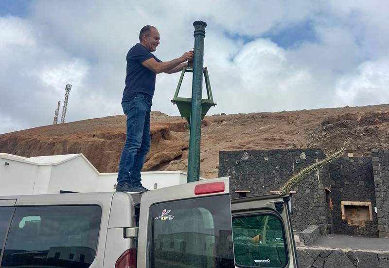 Jesús Machín una vez más tuvo que arreglar, con la ayuda de una furgoneta, el mobiliario público