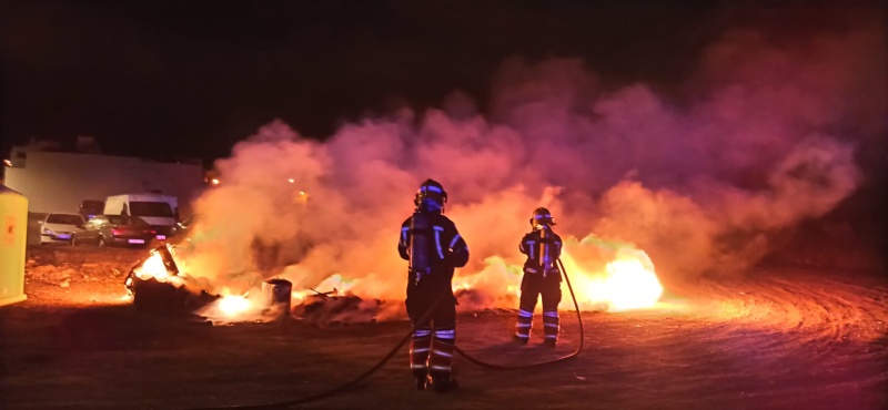 Un incendio afecta a dos contenedores orgánicos, uno de cartón y otro de vidrio hasta hacerlos arder en su totalidad