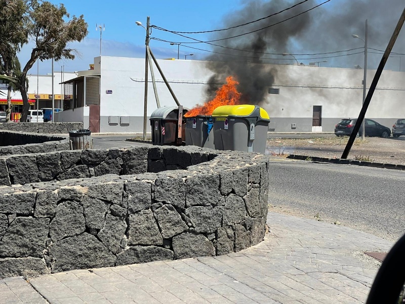 Arden tres contenedores en la calle Fayna de Arrecife durante la madrugada