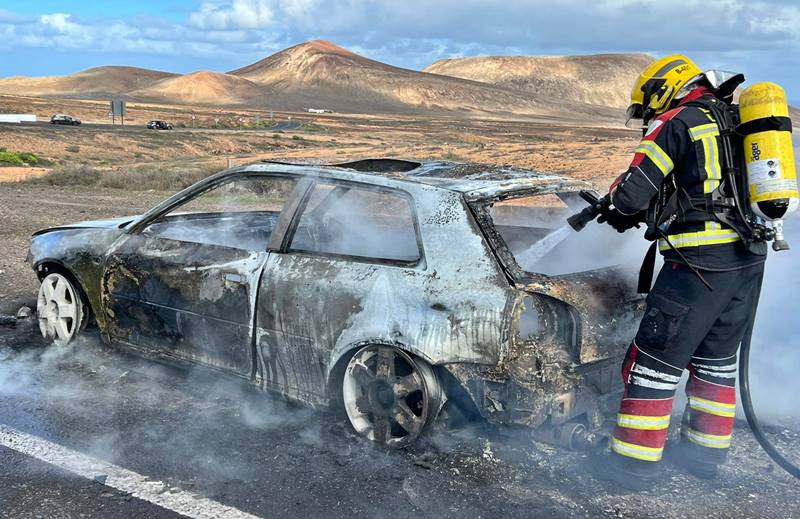 Un vehículo queda reducido a chatarra tras un incendio en Arrecife