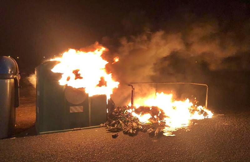 Vea el vídeo donde se observa varios contenedores y una furgoneta afectados por las llamas