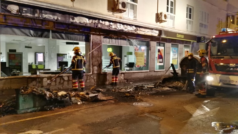 Arden tres contenedores en la calle Fayna de Arrecife durante la madrugada