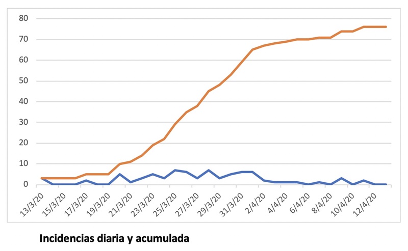 El número de ingresados es de 16, 9 en planta y 7 en la UCI, y en seguimiento domiciliario hay 44 personas