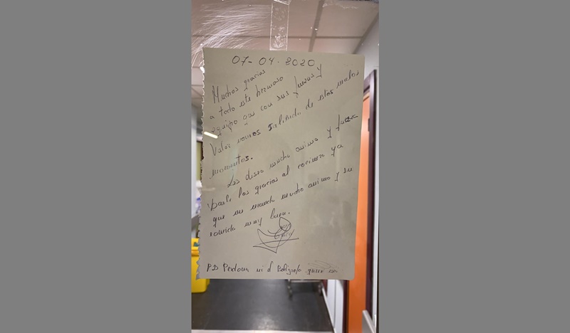 Carta de un paciente al Hospital Doctor José Molina Orosa