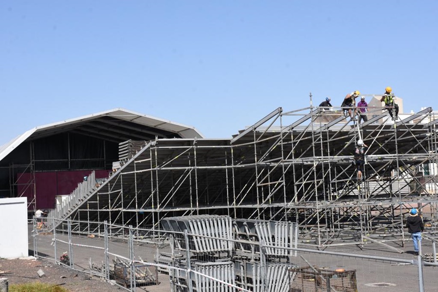 Los operarios trabajan ya en el escenario y las gradas que acogerán los principales actos de las fiestas