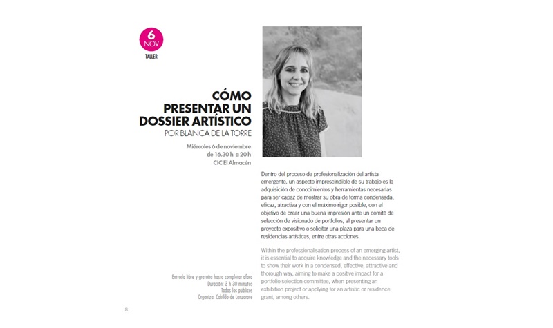 La comisaria de arte dirige el seminario, que se celebrará en El Almacén el 6 de noviembre, a  artistas y creadores emergentes