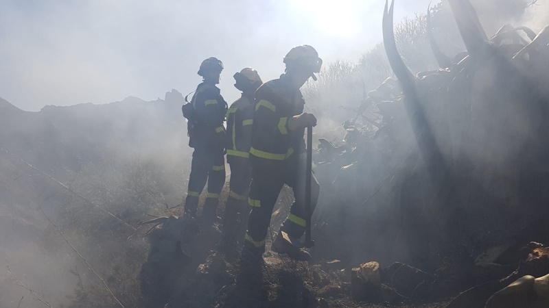Los efectivos del Consorcio de Seguridad y Emergencias asisten en las labores de extinción del devastador incendio que sufre la isla vecina