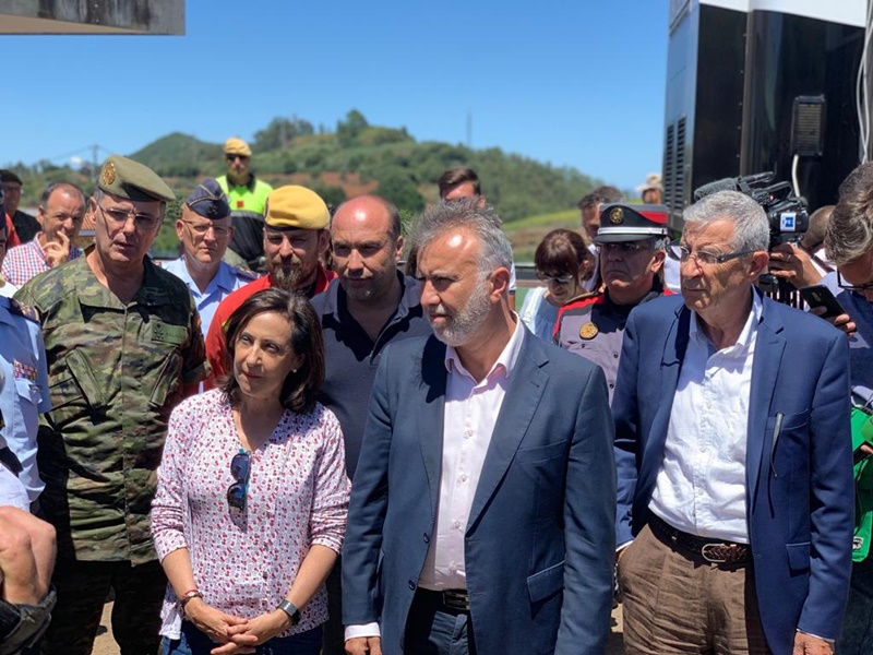 La ministra de Defensa en funciones, Margarita Robles, visita Valleseco para interesarse por la evolución del incendio