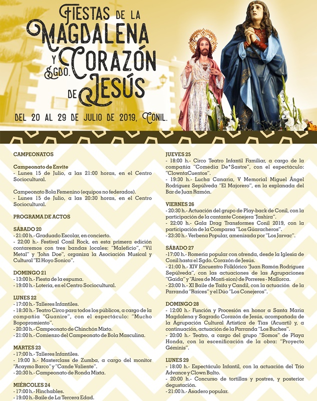Las fiestas patronales en honor a Santa María Magdalena y Sagrado Corazón de Jesús tendrán su día grande el domingo con la procesión